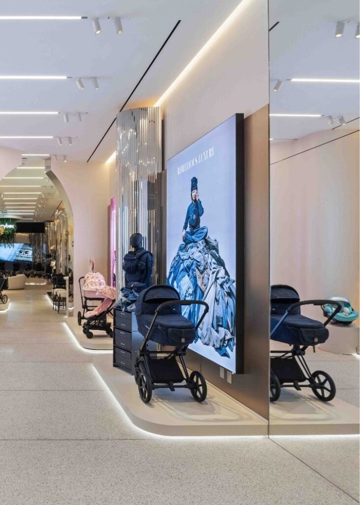 Moderna i profinjena estetika trgovine kreira dijalog između prepoznatljivog dizajna CYBEX-ovih proizvoda i jedinstvenog karaktera živopisnog New Yorka. Ovaj pomno oblikovan prostor osmišljen je kako bi potaknuo jedinstveno, intimno i inspirativno iskustvo kupovine, uz ekskluzivnu VIP zonu za individualne premium termine.